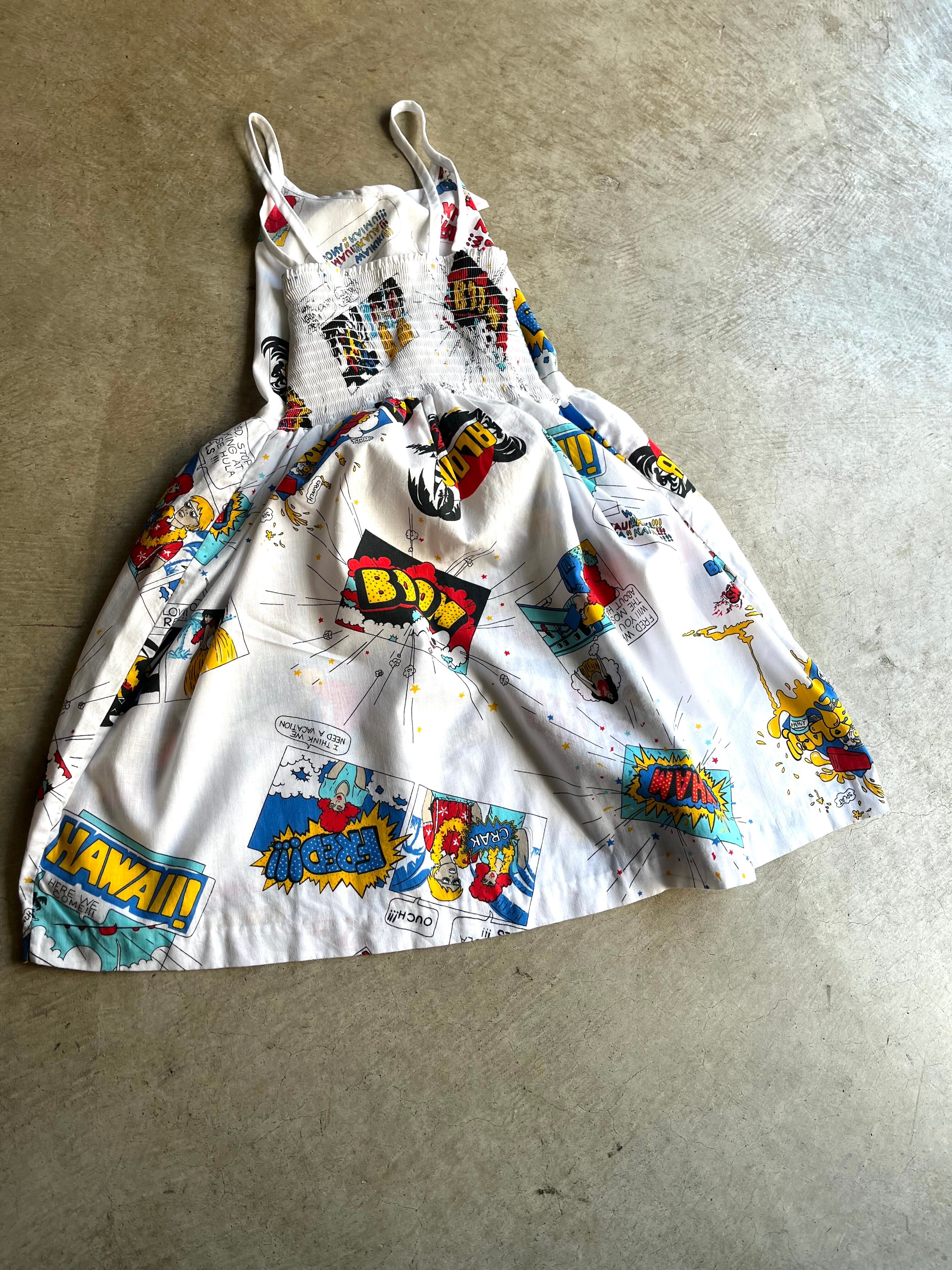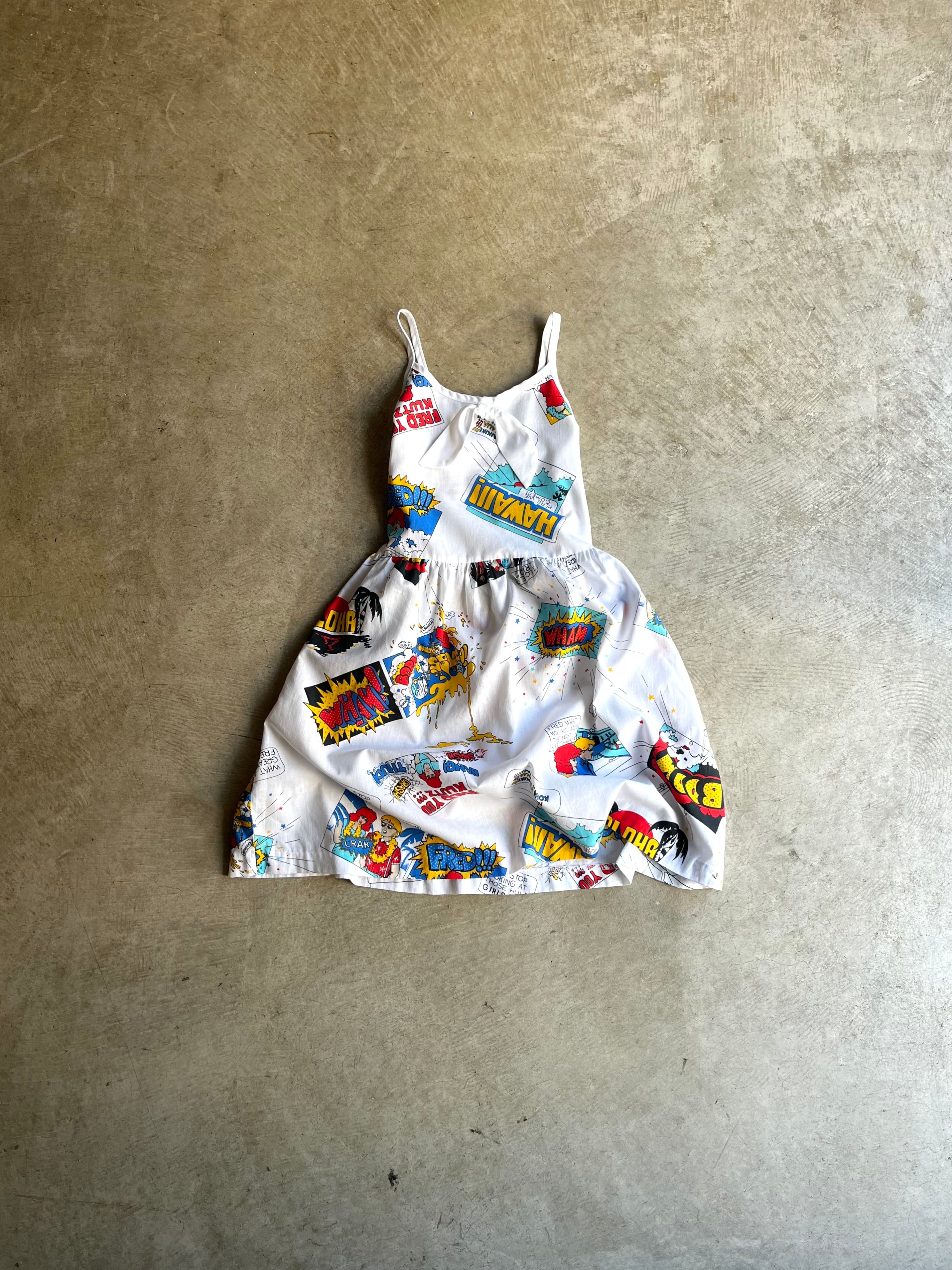 素材はCOTTON 50%、POLYESTER 50%使用で、アメリカンコミック柄のキャミソールドレス。