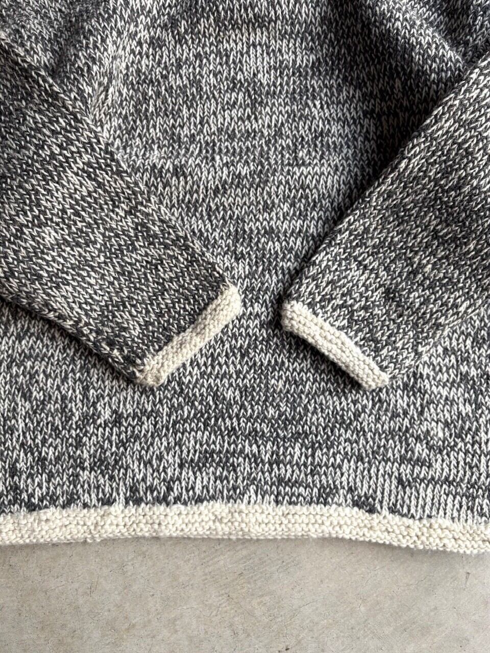 肉厚でチャンキー(分厚い)なウールを使用したハンドニット製。