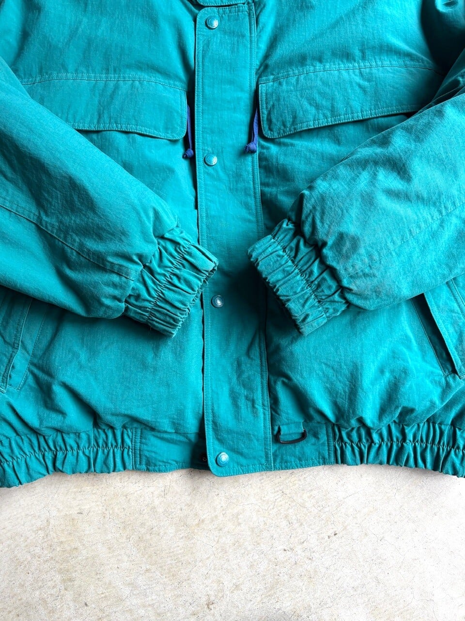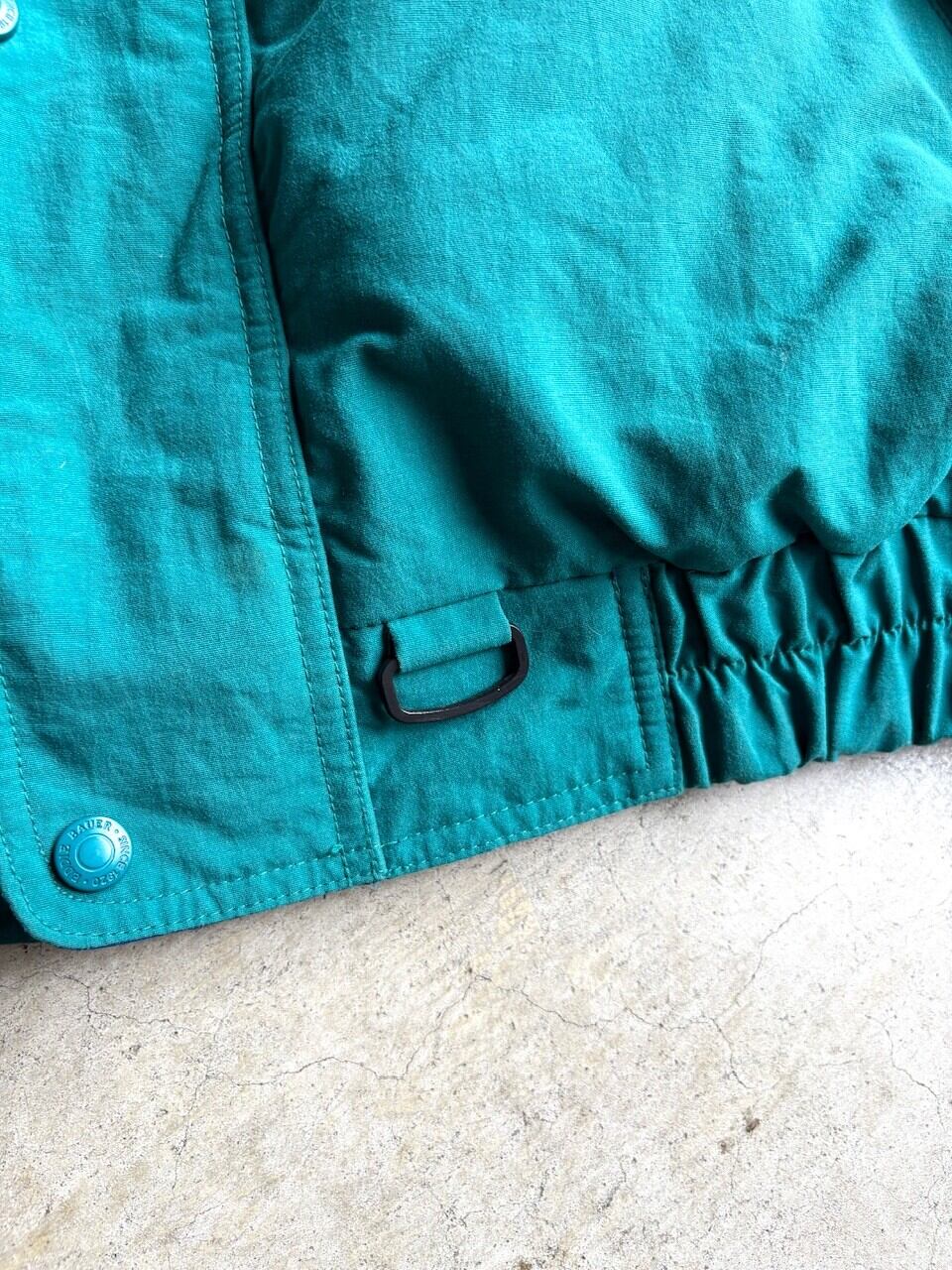 シンプルなデザインながら Eddie Bauerらしい、ティールグリーンが映える一着。