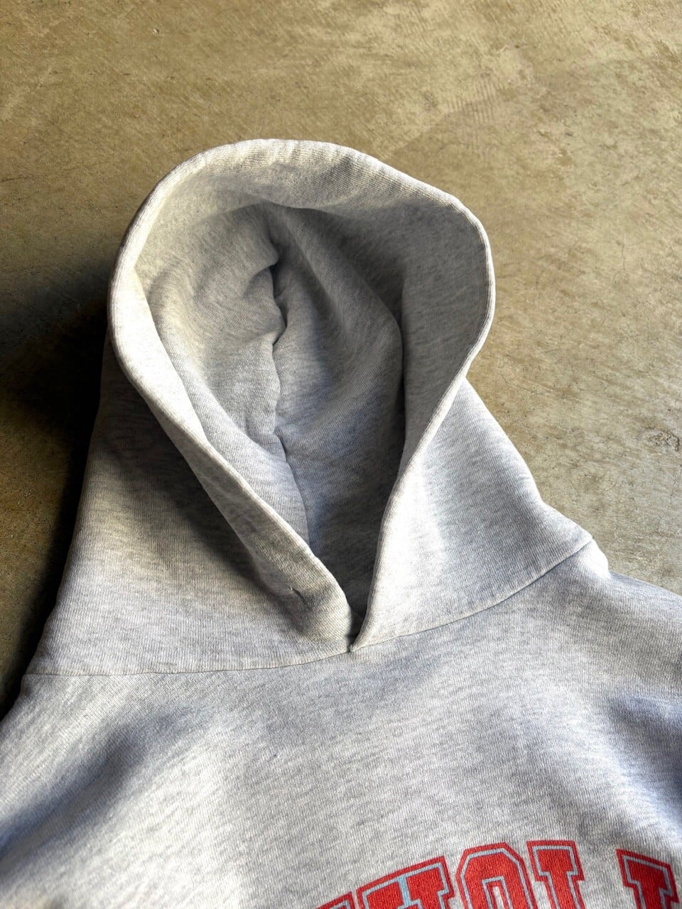 丈は短めで身幅のあるボックスシルエットで、シルエットも良く、フードの形も良好です。