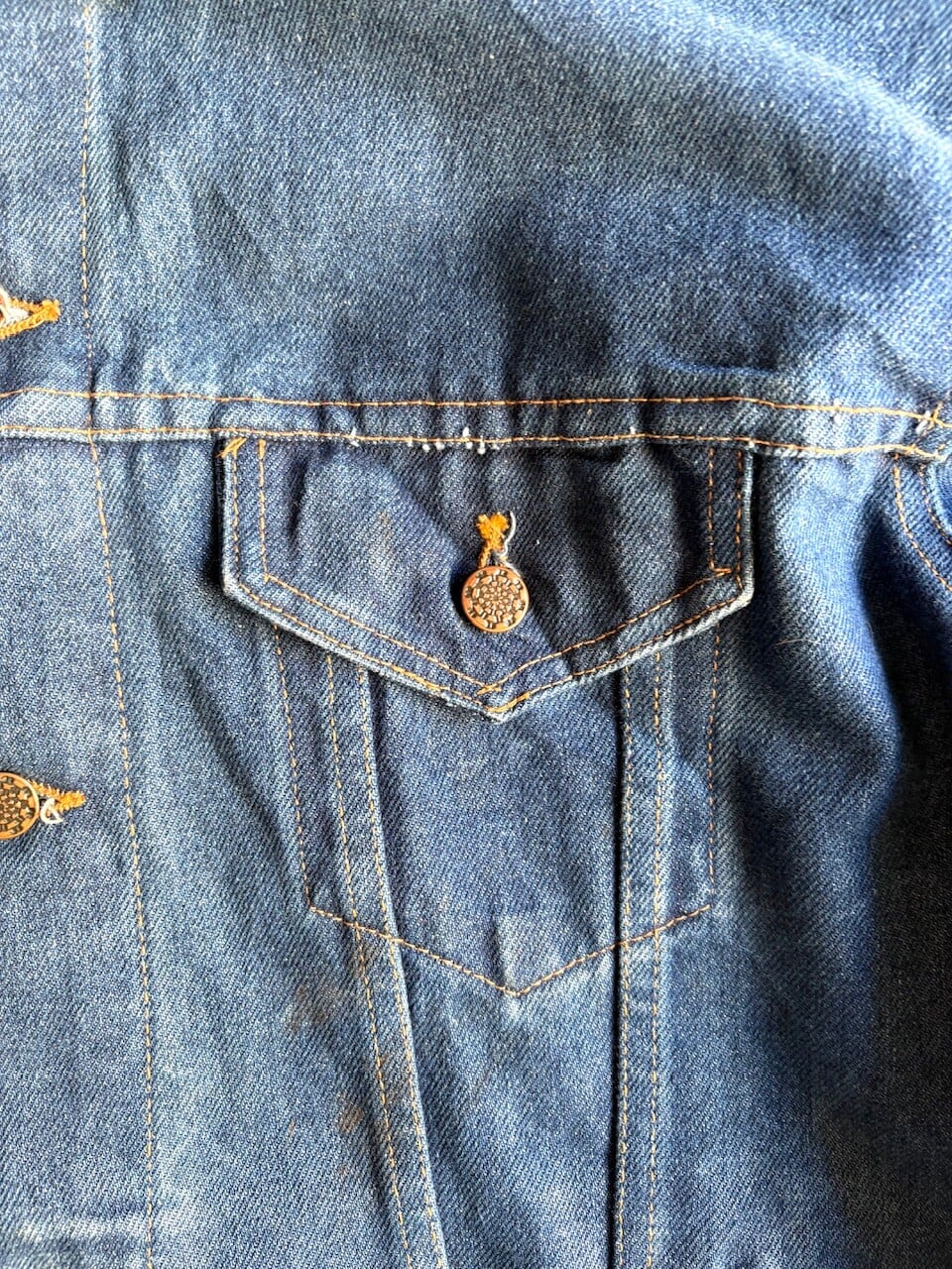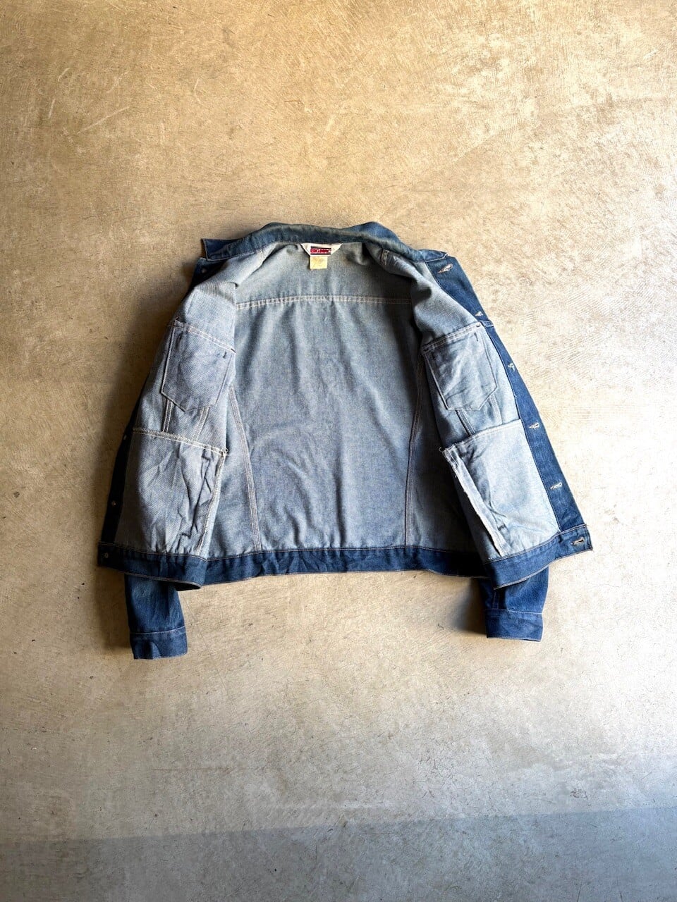 Levi's 70506同様のモデルで、フロントの胸部分にはフラップポケットと、ハンドウォーマーポケットが追加された機能的なデニムジャケット。