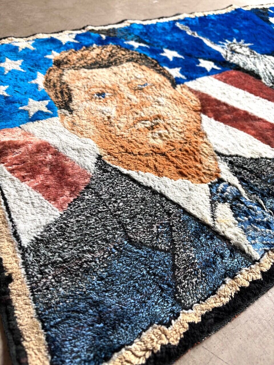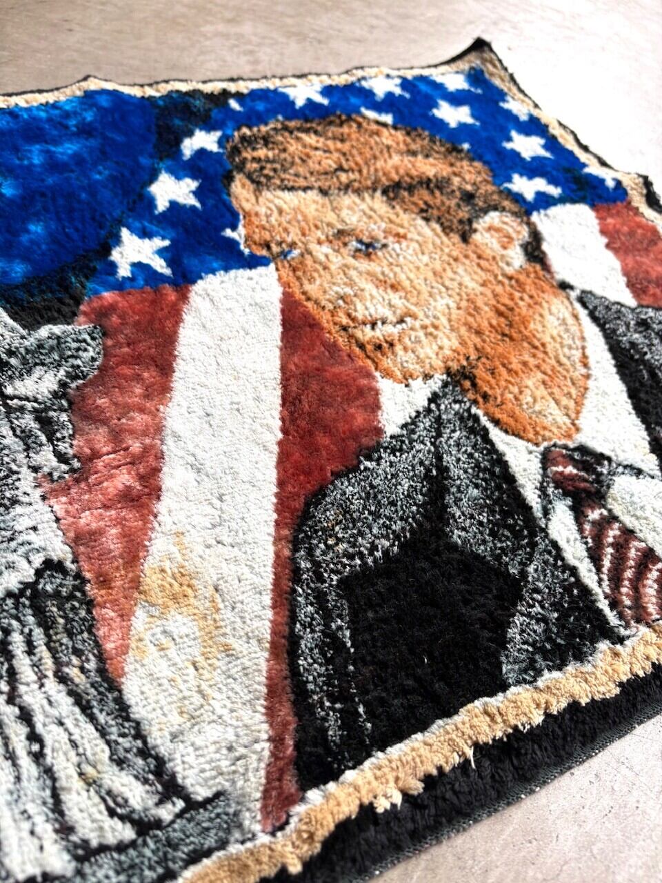 中央には自由の女神像、そして背景全体に星条旗があしらわれた、特徴的なデザインの “TAPESTRY RUG”。