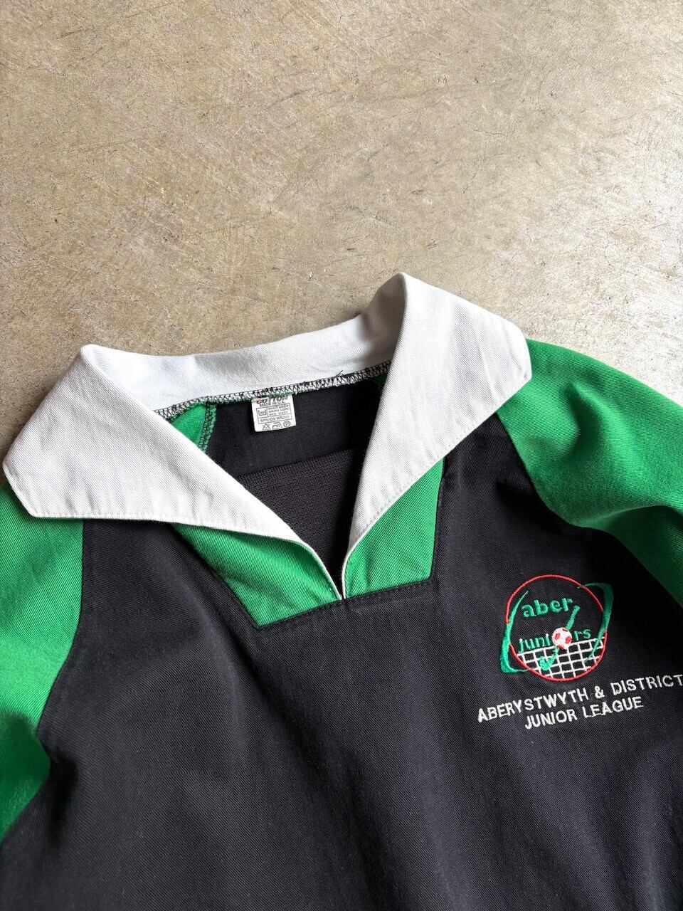 胸部分には、ウェールズ中央部のアベリストウィスを中心とした地域で開催されているジュニア世代のためのサッカーリーグ「ABERYSTWYTH & DISTRICT JUNIOR LEAGUE」の刺繍、バックプリントも施されており、インパクトのあるデザイン。